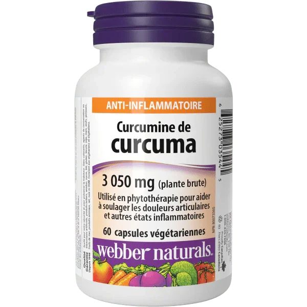 Webber Naturals Turmeric Curcumin 3050 mg is a high-potency herbal supplement formulated to support joint health, reduce inflammation, and provide powerful antioxidant protection. Made with concentrated turmeric extract standardized for curcuminoids, this formula helps relieve joint discomfort and supports overall mobility and well-being.