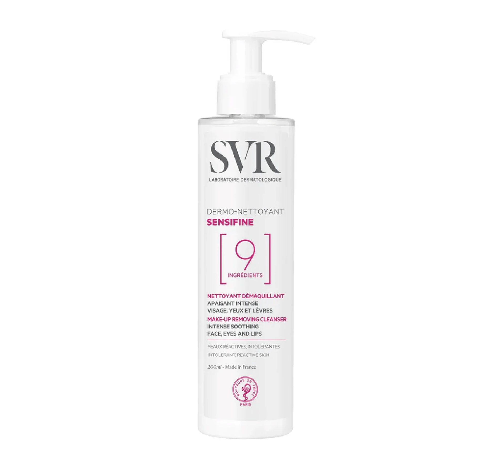 SVR Sensifine Dermo-Nettoyant 9 është një xhel i freskët dhe kremoz që heq butësisht grimin, pastron dhe qetëson lëkurën më të ndjeshme dhe intolerante në një hap të vetëm, pa pasur nevojë për fërkim.